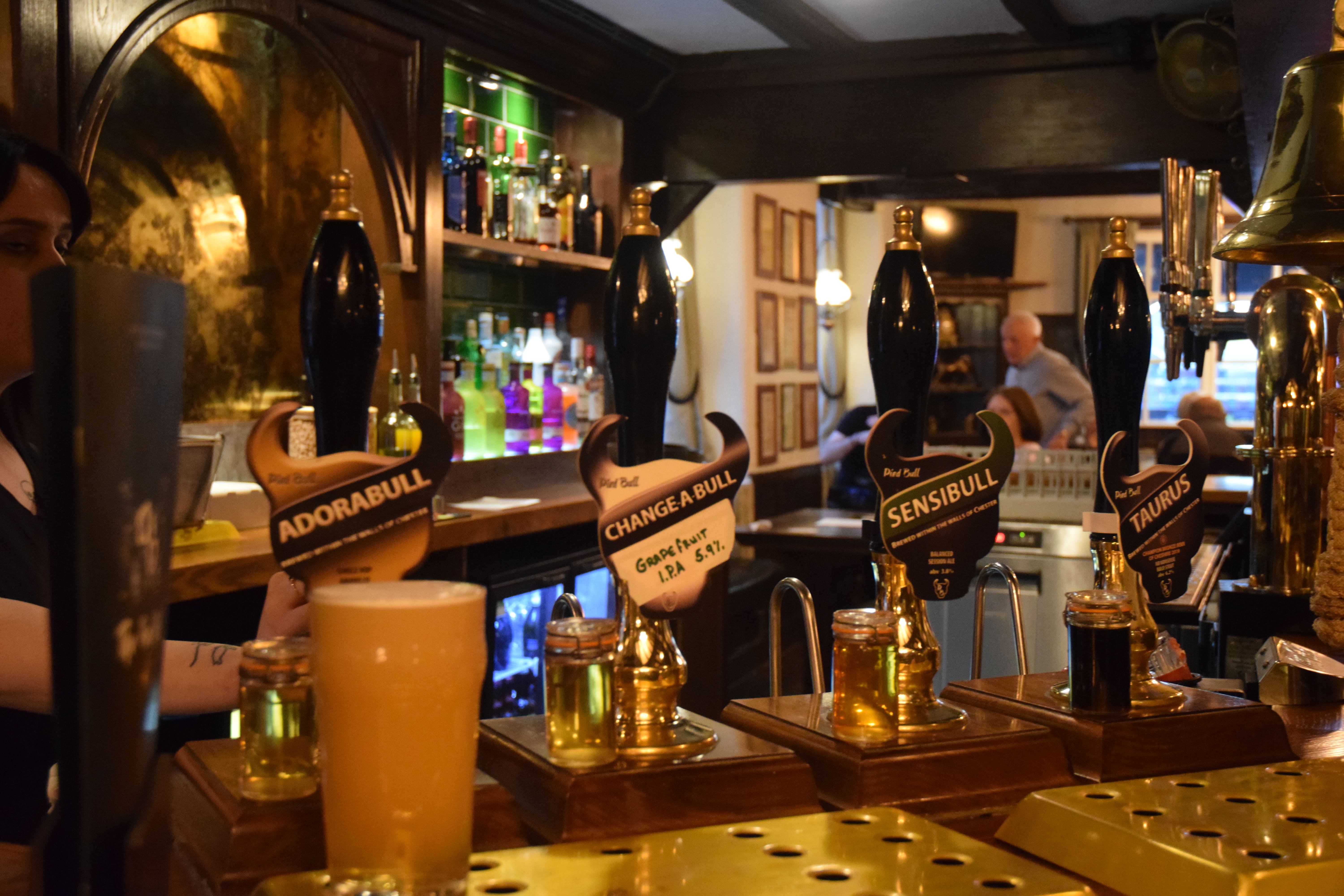 Finita la prima birra (che è sempre la più buona) ci dirigiamo all’albergo per il consueto lancio bagagli e ci dirigiamo verso il centro di Chester. Facciamo un giro esplorativo per le vie principali ma dato che sono ormai le 19 locali passate e cerchiamo un posto dove mangiare qualcosa. Percorriamo la Northgate street ed entriamo senza indugio al “The Pied Bull”, il locale mesce birre direttamente prodotte da loro e noi iniziamo con quattro “Adora Bull” una Pale Ale con luppolo amarillo da 3.8°, il locale è anche un hotel, e come ci è capitato altre volte, nei pub che hanno anche l’hotel si mangia bene, quindi per accompagnare degli ottimi petti di pollo e una steak pie, ordiniamo 4 SensiBull delle Session Ale anche queste da 3.8° e molto buone. Ultimo giro con 4 Bull’s Hit una golden Ale con luppoli americani e neozelandesi da 4.3°.