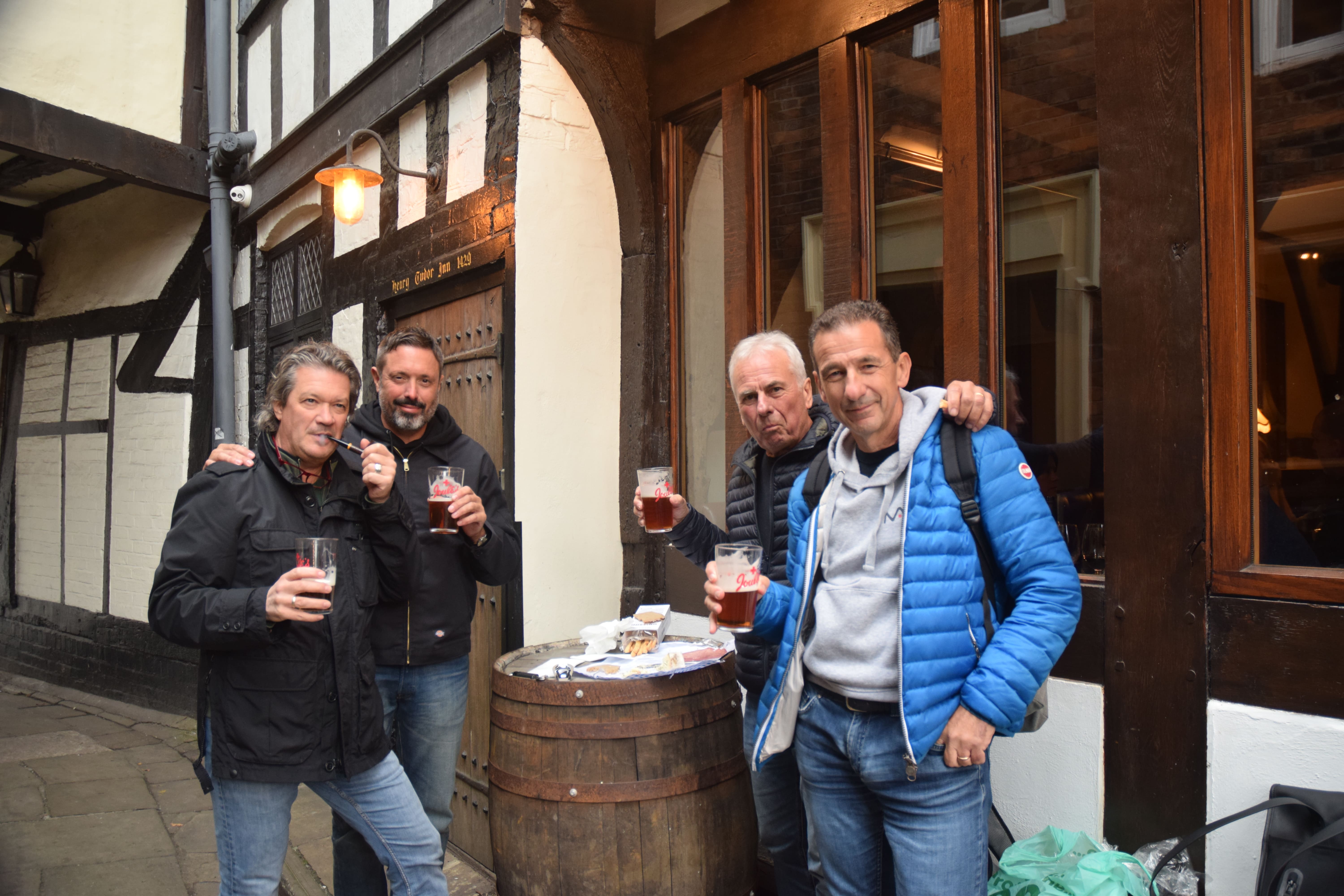 Rinvigoriti proseguiamo la passeggiata lungo il canale fino a giungere al ridente paesino di Christleton dove troviamo il “The Plogue”, pub tipico di paese dove servono un’ottima Timothy Taylor’s Landlord. Partiamo con un giro da 4 ed altrettanti sacchetti di pork schretch che attirano ovviamente l’attenzione degli avventori abituali, incuriositi da 4 loschi figuri che bevono real ale (a secchi). Si inizia ovviamente parlando di birra per finire inevitabilmente sul calcio con la diatriba se a Chester si tifa Liverpool o Man United, al quarto giro (ovviamente offriamo noi per tutti) iniziano i cori e le foto e dopo un’ultima birra decidiamo di chiamare un Uber per rientrare a Chester per la cena.