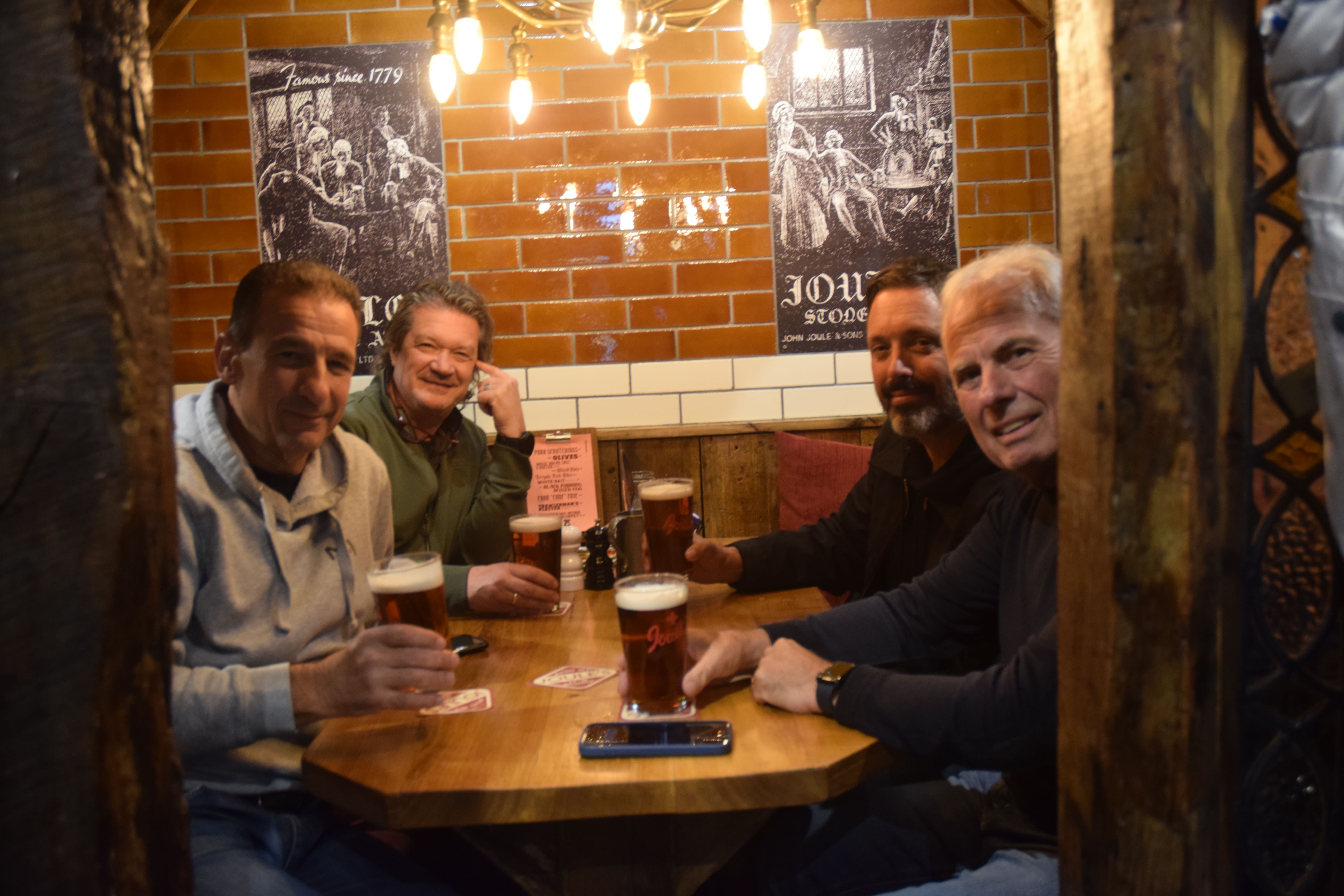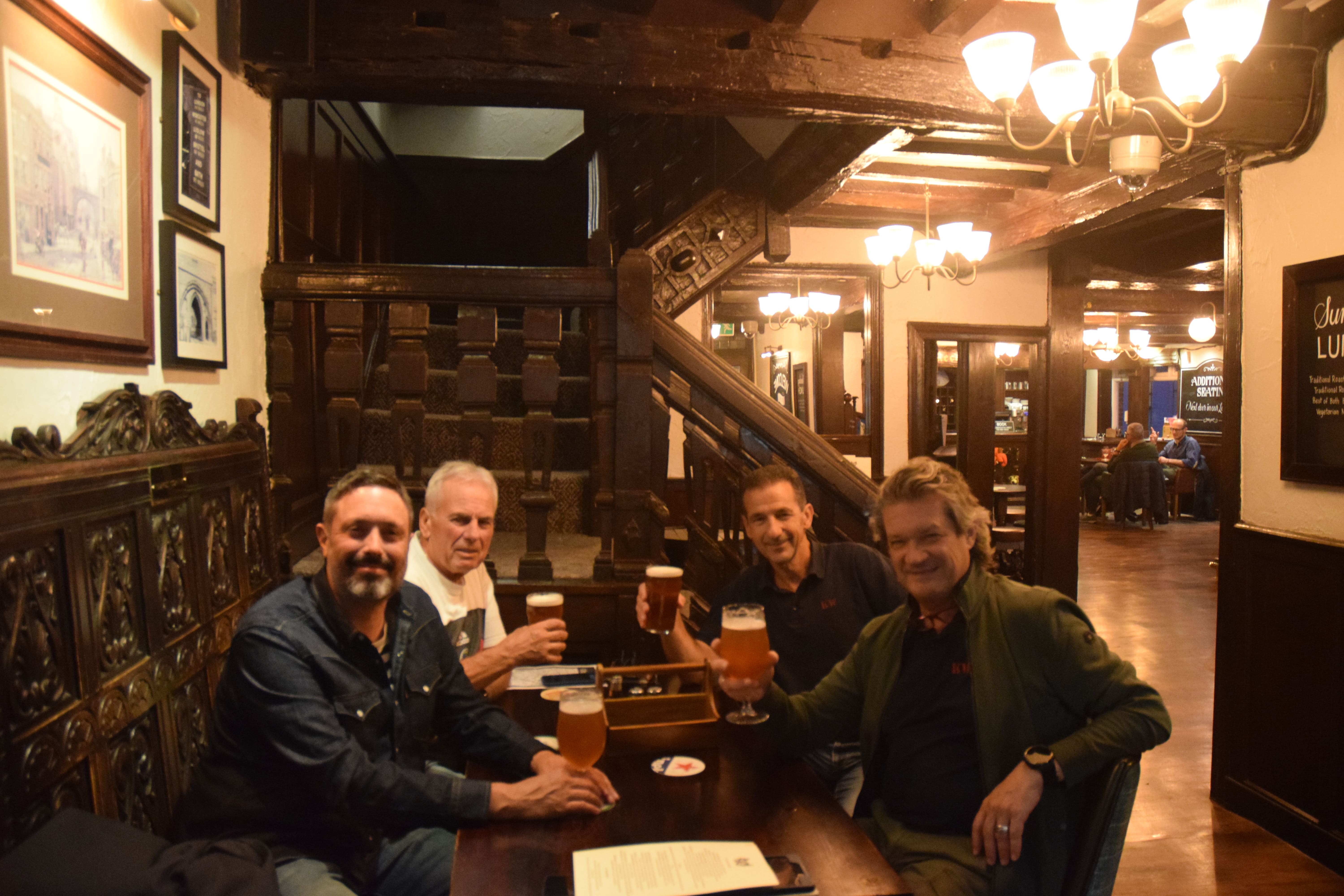 Rinvigoriti proseguiamo la passeggiata lungo il canale fino a giungere al ridente paesino di Christleton dove troviamo il “The Plogue”, pub tipico di paese dove servono un’ottima Timothy Taylor’s Landlord. Partiamo con un giro da 4 ed altrettanti sacchetti di pork schretch che attirano ovviamente l’attenzione degli avventori abituali, incuriositi da 4 loschi figuri che bevono real ale (a secchi). Si inizia ovviamente parlando di birra per finire inevitabilmente sul calcio con la diatriba se a Chester si tifa Liverpool o Man United, al quarto giro (ovviamente offriamo noi per tutti) iniziano i cori e le foto e dopo un’ultima birra decidiamo di chiamare un Uber per rientrare a Chester per la cena.
