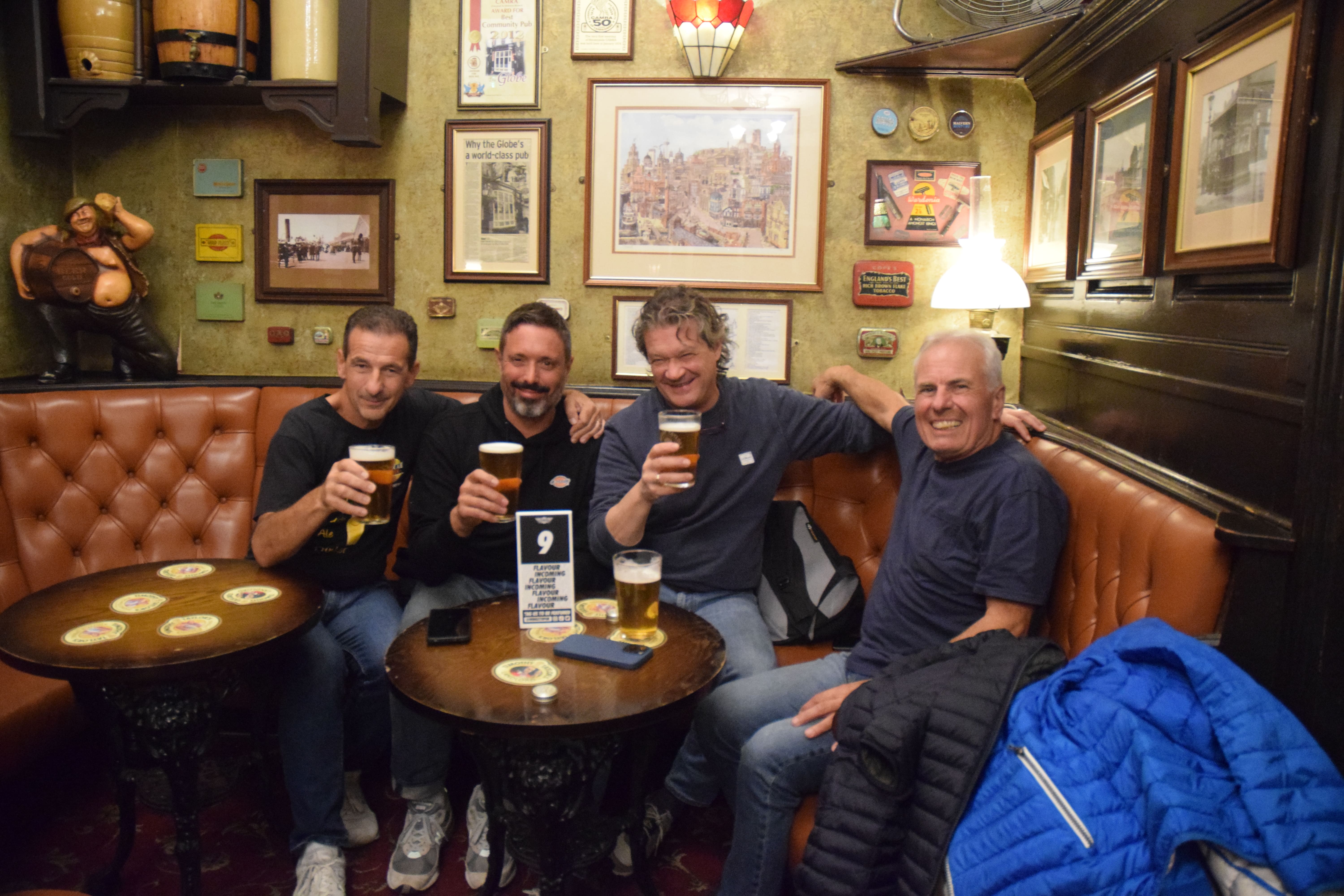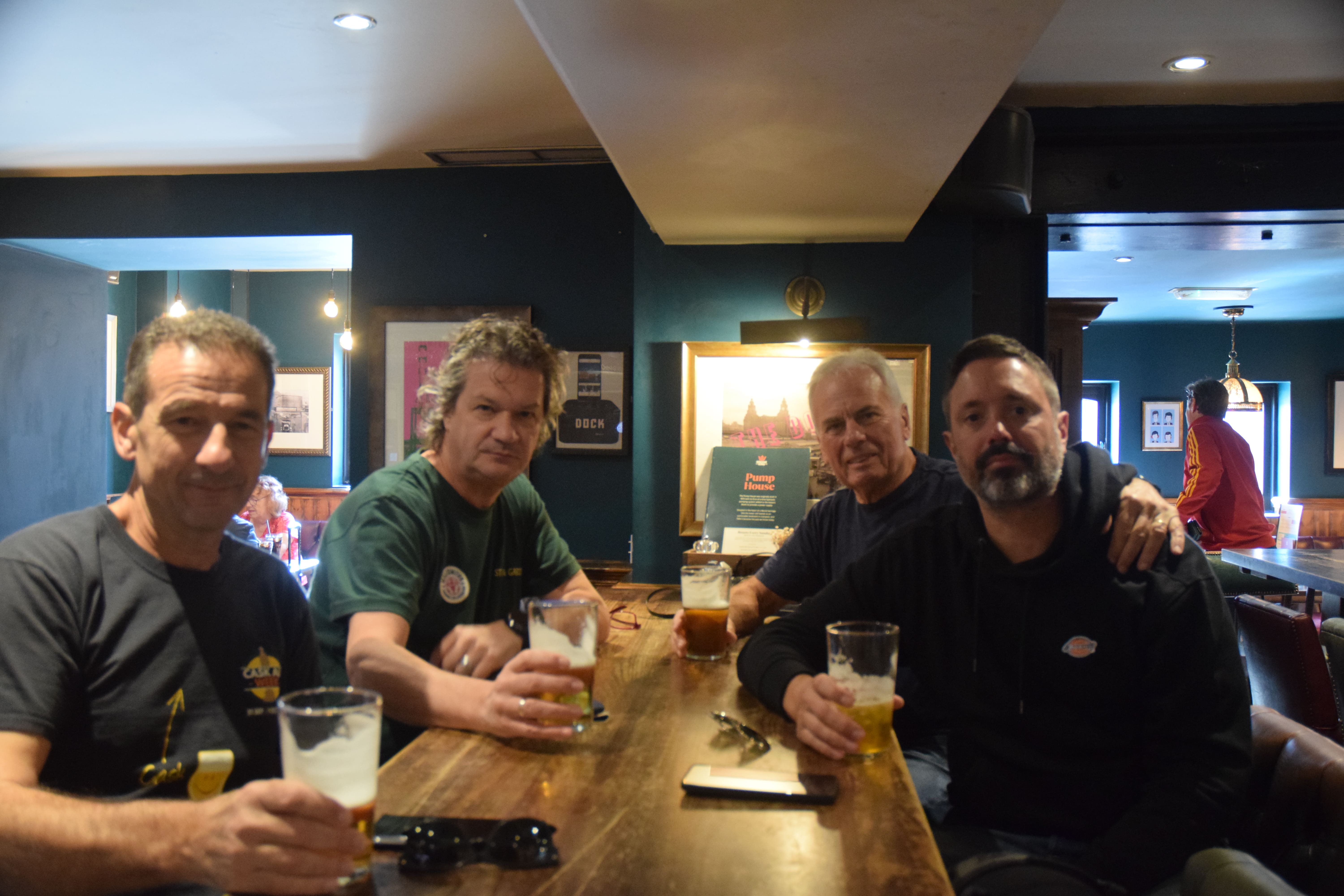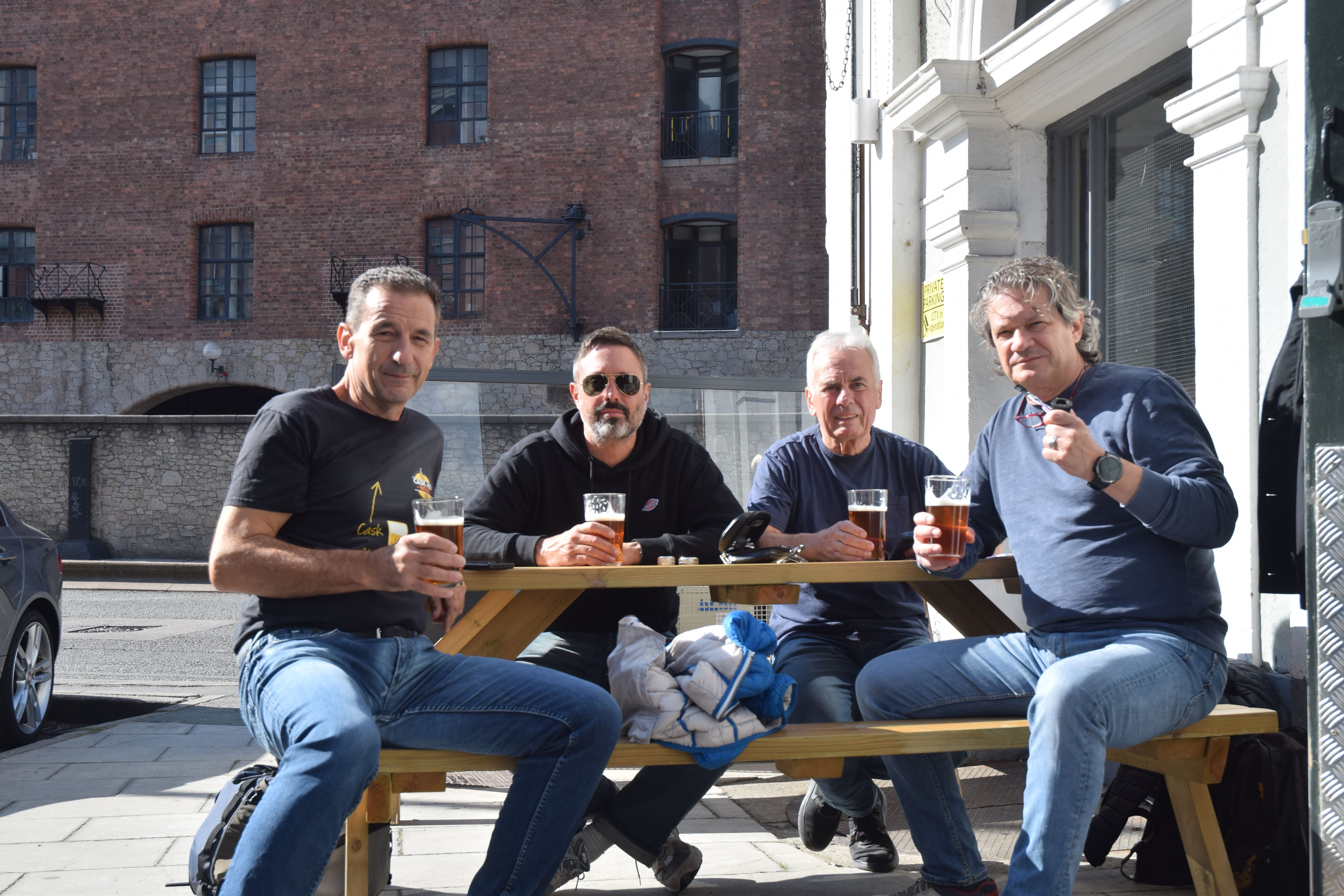 Venerdì 26 ci alziamo di buon mattino ed iniziamo subito a far fondo con una Full English Breakfast per affrontare la trasferta verso Liverpool. Per me e Denis sarà un gradito deja vu mentre per i giovani Keko e Pieri sarà sicuramente una bella sorpresa. Arriviamo nella città dei Beatles alle 10 ed in attesa dell’apertura dei pubs andiamo a fare un giro nei docks, la giornata è splendida non c’è una nuvola e fa caldo tant’è che ci muoviamo in maglietta. Finalmente si è fatta ora di apertura e iniziamo la giornata al “The Pump House” nel bel mezzo dei docks, il è curatissimo con diverse salette arredate “alla marinara”, forse un po' turistico ma comunque con una bella scelta di Real Ale, noi scegliamo una Iceberg del birrificio Titanic, una Pale Ale da 4.4 gradi davvero buona con aromi agrumati ed intensi e un finale luppolato potente Usciamo dal The Pump e riprendiamo il giro nostalgico raggiungendo dopo qualche centinaio di metri, il “Baltic Fleet”. Rispetto a quando eravamo stati (15 anni fa) l’interno è totalmente trasformato, il bancone che ci si trovava di fronte all’ingresso ora è stato sostituito da un lungo banco che corre per quasi tutto il corridoio. Vista la giornata ci accomodiamo fuori e partiamo con 4 Bitter del birrificio Coley’s che non ci soddisfano in pieno e così facciamo un giro di Trapper’s Hat del Brimstage Brewery una Session Ipa rinfrescante e luppolata, dal colore dorato molto buona.