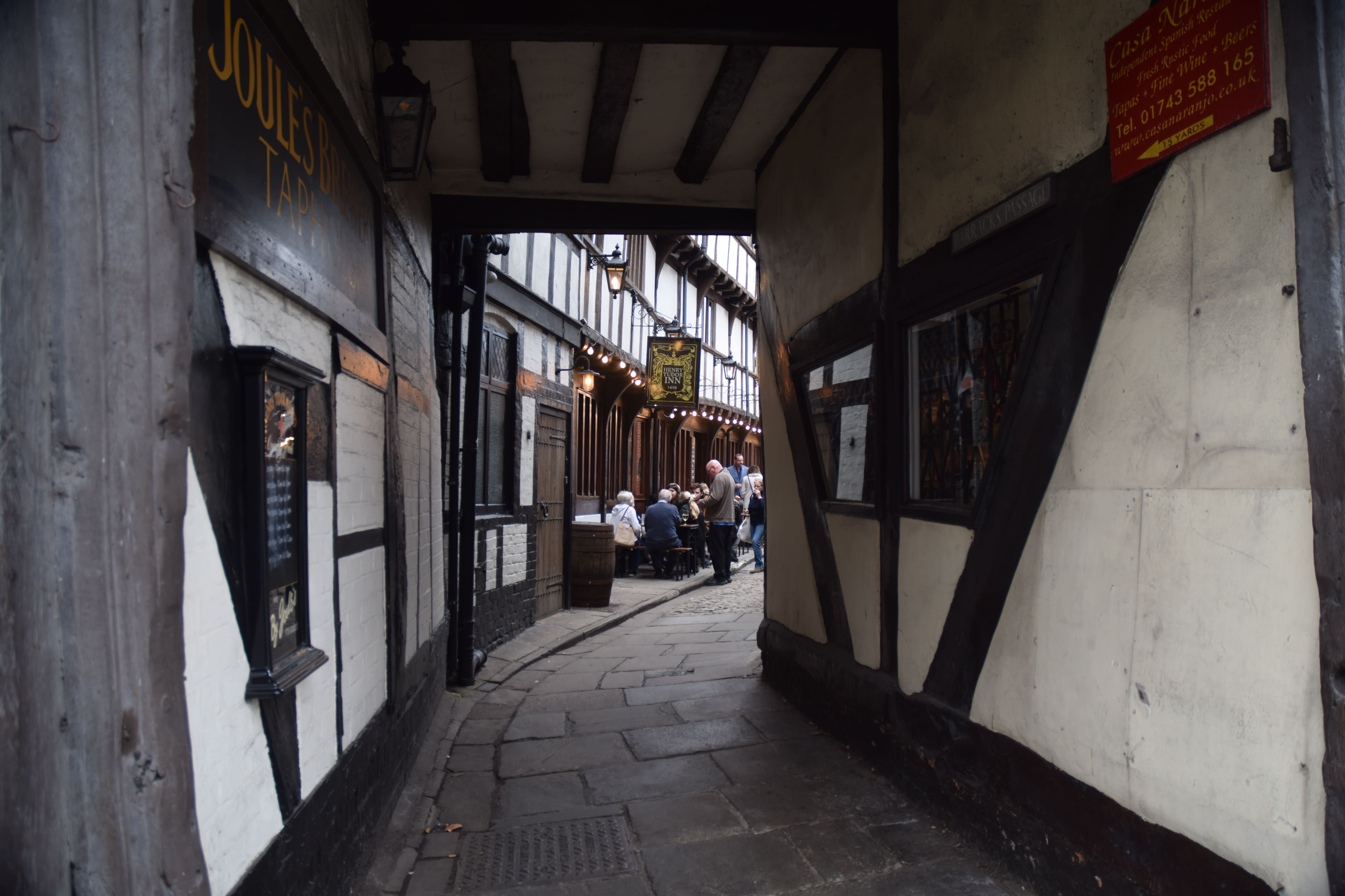 Siamo arrivati a sabato e decidiamo di fare ancora un giretto, così prendiamo un Uber e ci facciamo portare nella ridente cittadina di Shrewsbury, la cittadina è veramente bella, un castello in arenaria domina dall’alto le bellissime stradine di ciottolato, e noi, da inguaribili romantici quali siamo, ne prendiamo subito una ed entriamo al Red Bull,
